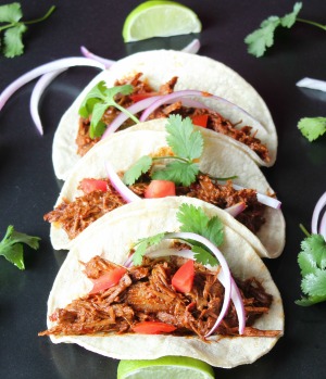 The Instant Pot Barbacoa is moist and tender shredded beef in a light red chile sauce.