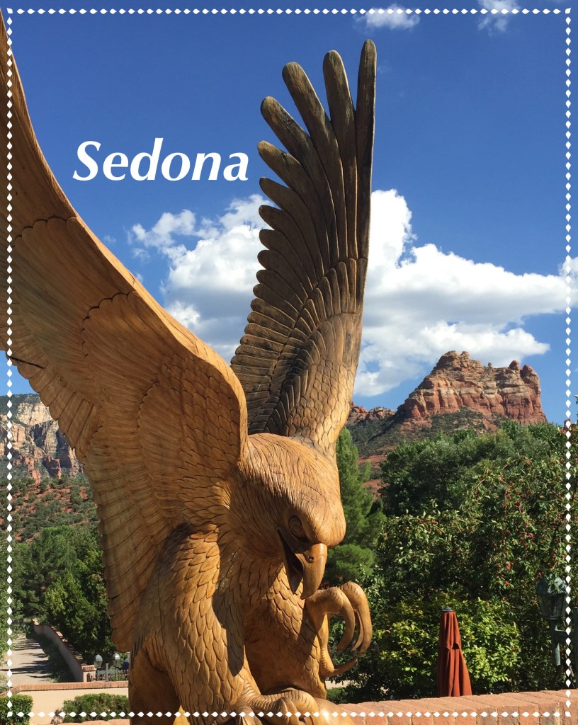 Rolling up from Phoenix on Highway 17 in our Toyota Camry XLE on a sweltering hot summer afternoon, Art and I moved along to Hwy 179 where we were greeted by deep, dark red steep canyon walls standing above us in towering formations like an oil painting on a canvas of crystal blue sky. The scene: absolutely breathtaking. As Art navigated the winding road, I was in the passenger seat like a little boy seeing for the first time something marvelous. I kept cranking my head around like an owl, trying to see what I could see and snapping away on my camera phone.
